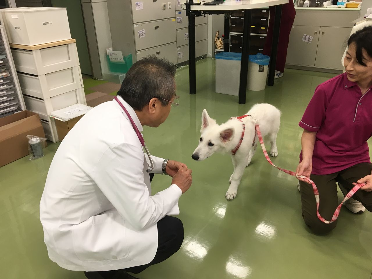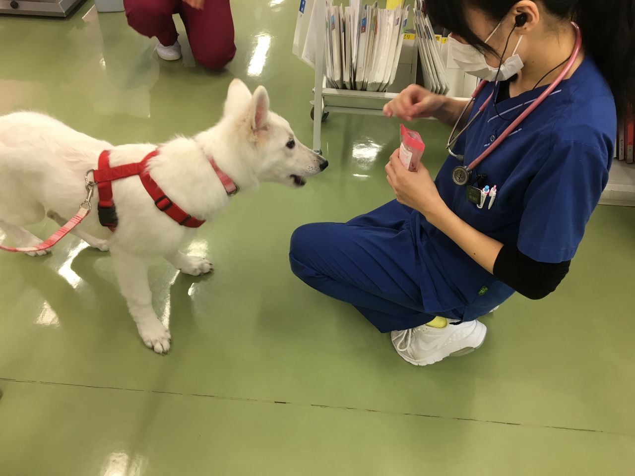 動物病院は病気や怪我など何かあった時にしか行かない場所というイメージがありがちですが、こうやって何でもない時やパピーの頃から来ておやつをもらったり楽しいことがあると、いざ何か治療で来ることがあっても怖がらずに頑張れるようになります